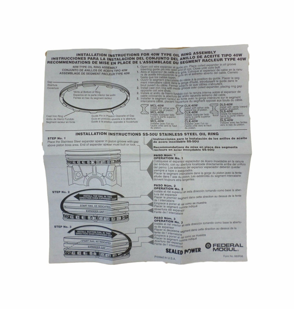 Federal Mogul 5809KX-40 Piston Ring Set 2c-5123 040 5809KX 40 Brand New