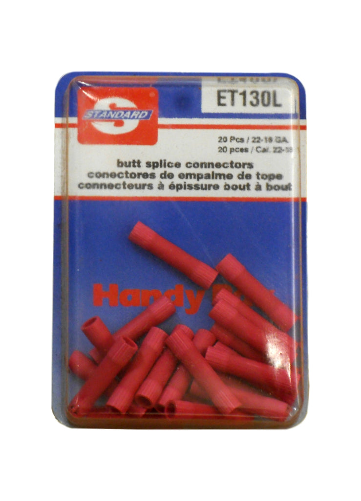 Standard Butt Splice Connectors ET130L 20pcs 22-18 Ga. Brand New